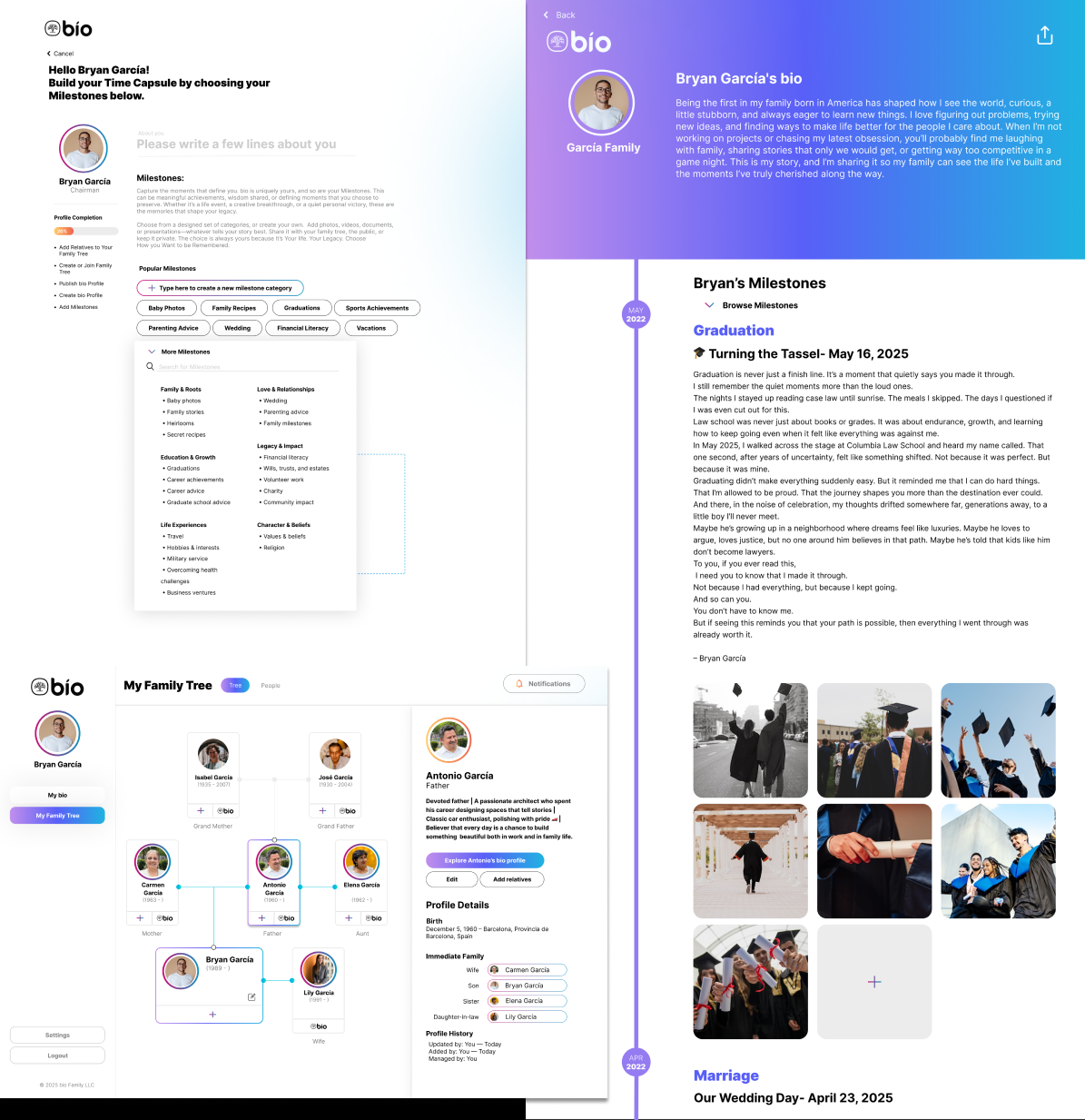 Each bio profile links to your place in the family tree, so your story becomes part of a shared legacy. You're not just storing files, you're preserving the story of your life that becomes something your family can revisit forever.